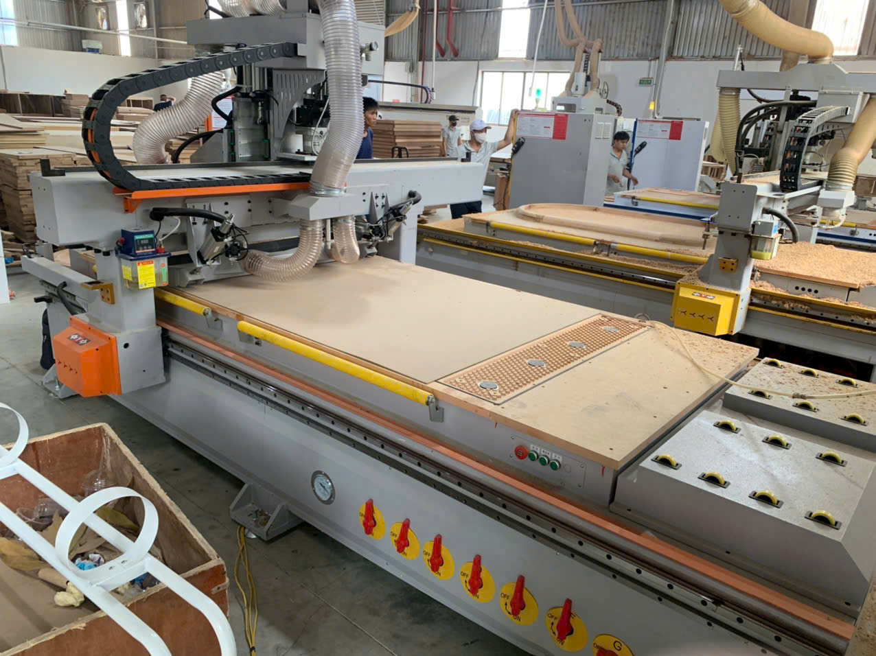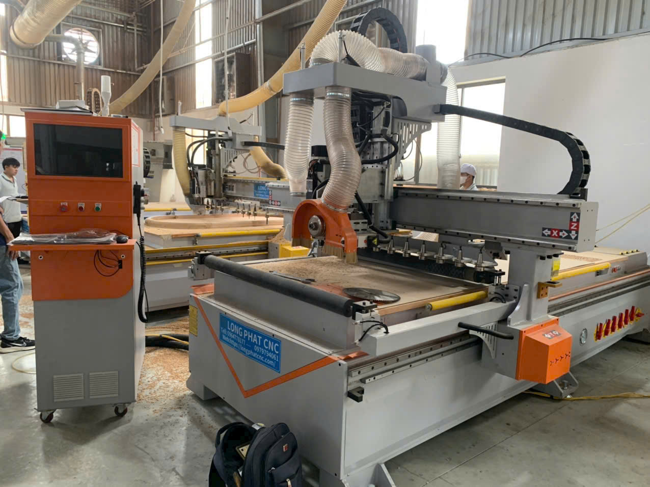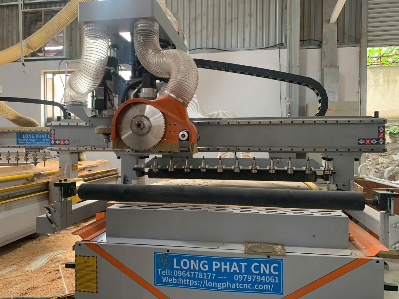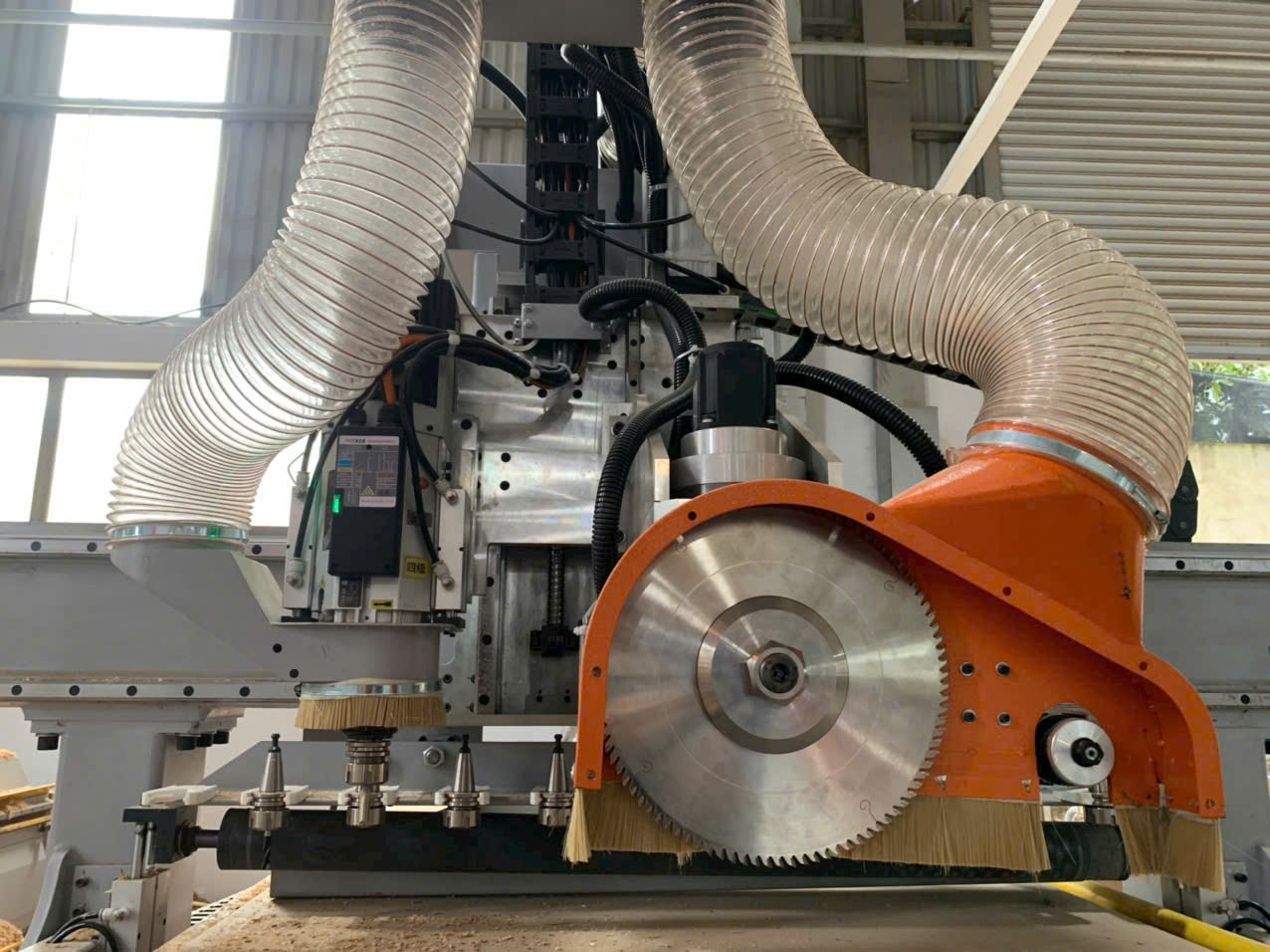 - Sử dụng trục chính thay dao tự động 9kw + 2 trục cưa có thể xoay đa hướng và cắt tuyệt đối chính xác và nhanh chóng. Phần mềm hệ thống Đài Loan và bộ giảm tốc Nhật Bản, linh kiện điện ABB của Thụy Điển và các linh kiện nhập khẩu khác.